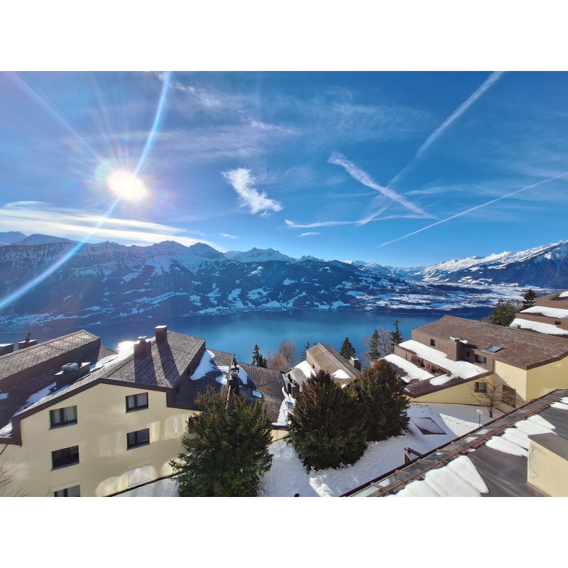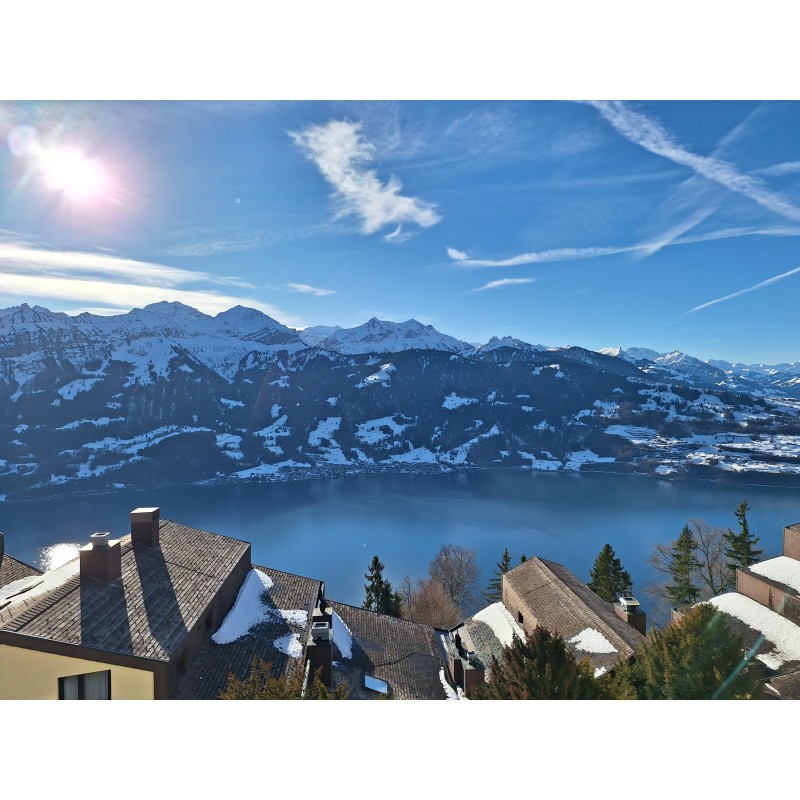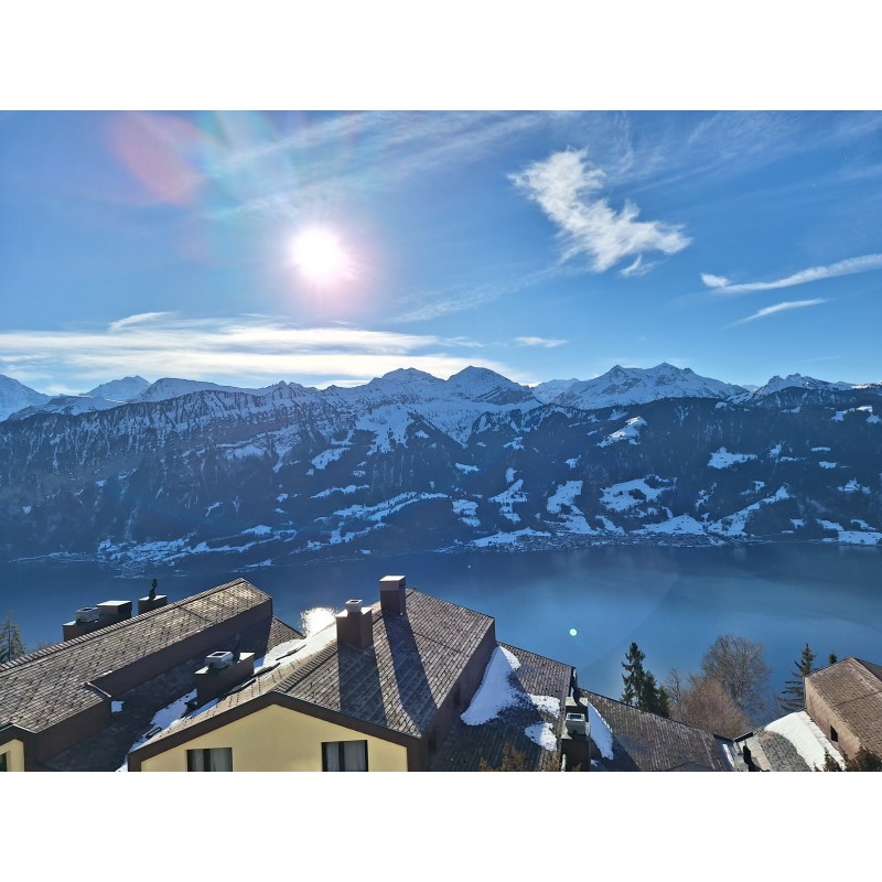 Kitchen , balcon, view lake and moutain